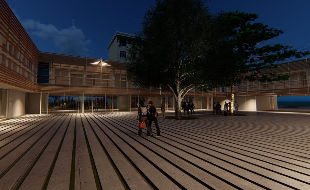 The new University Campus, which will be built following the demolition of the existing buildings, is designed to be on two floors, with single and double rooms to accomodate a total of 200 beds. The main building is designed around a courtyard equipped with greenery and seating, keeping the existing trees in the centre. On the side of the Aurelian Walls, the courtyard is detached from the ground by eight light steel pillars, and two extensions of the residential areas continuing on either side. The façade of the building becomes the stylistic feature of the intervention, designed with natural terracotta slats of different sections that fray until they dissolve at the edges of the building. The interior of the building will be dry construction, with steel structures and fibre cement or plasterboard infill. On the roof will be a large green space, partially shaded, which through transparent parapets will be in sync with the gardens below.