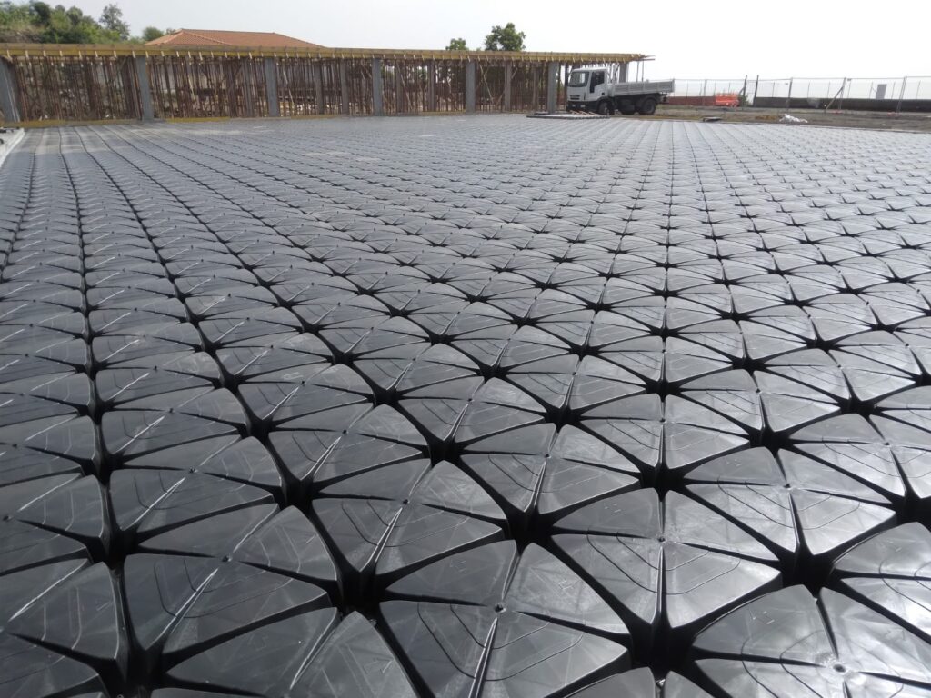 La conception de la structure prévoyait un vide sanitaire aéré utilisant des éléments préfabriqués en U, habituellement adoptés pour les structures résidentielles, mais non pour les installations sportives (en raison des coûts plus élevés qu’ils impliquent). La raison de ce choix a été dictée par la volonté d’assurer la durabilité et la qualité du revêtement technique. En effet, le vide sanitaire aéré protège le revêtement de l’humidité du sol, éliminant ainsi l’une des principales causes de détérioration, et assure le maintien de la qualité des performances dans le temps.