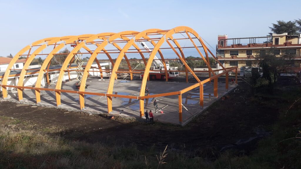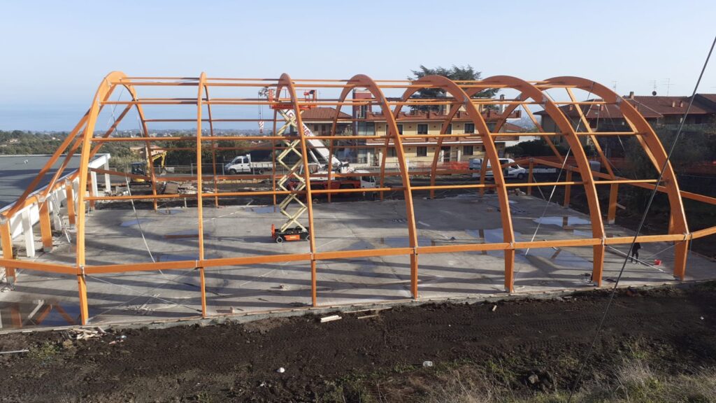 Le projet consiste dans la construction d’une installation sportive appelée « Palatenda », conforme à la réglementation en vigueur en matière d’installations sportives, avec les locaux techniques et les vestiaires nécessaires à l’homologation selon les normes du CONI. La rédaction du projet exécutif, la coordination de la sécurité, la direction, le mesurage et la comptabilité des travaux ont été réalisés en collaboration avec Cascone Engineering, et G.P. ing. Carmela Garozzo, Stancanelli Russo Associati en tant que mandataire du groupement.