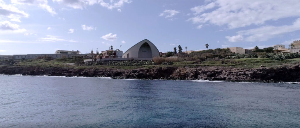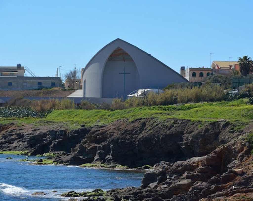 Pour maintenir la fluidité et la douceur des lignes, le geste compositionnel simple et uniforme a été en réalité d’une grande complexité et a exigé une attention importante dans sa réalisation. L’objectif de l’œuvre était de constituer le projet ecclésiologique et -liturgique issu du Concile Vatican II. La barque, symbole de la pêche dans la population est en particulier, l’élément compositionnel générateur de l’église. Elle tourne sa proue vers la Madone de l’île de Capo Passero qui est, elle-même, le symbole du mystère de la communion et du peuple de Dieu en pèlerinage vers la Jérusalem céleste.