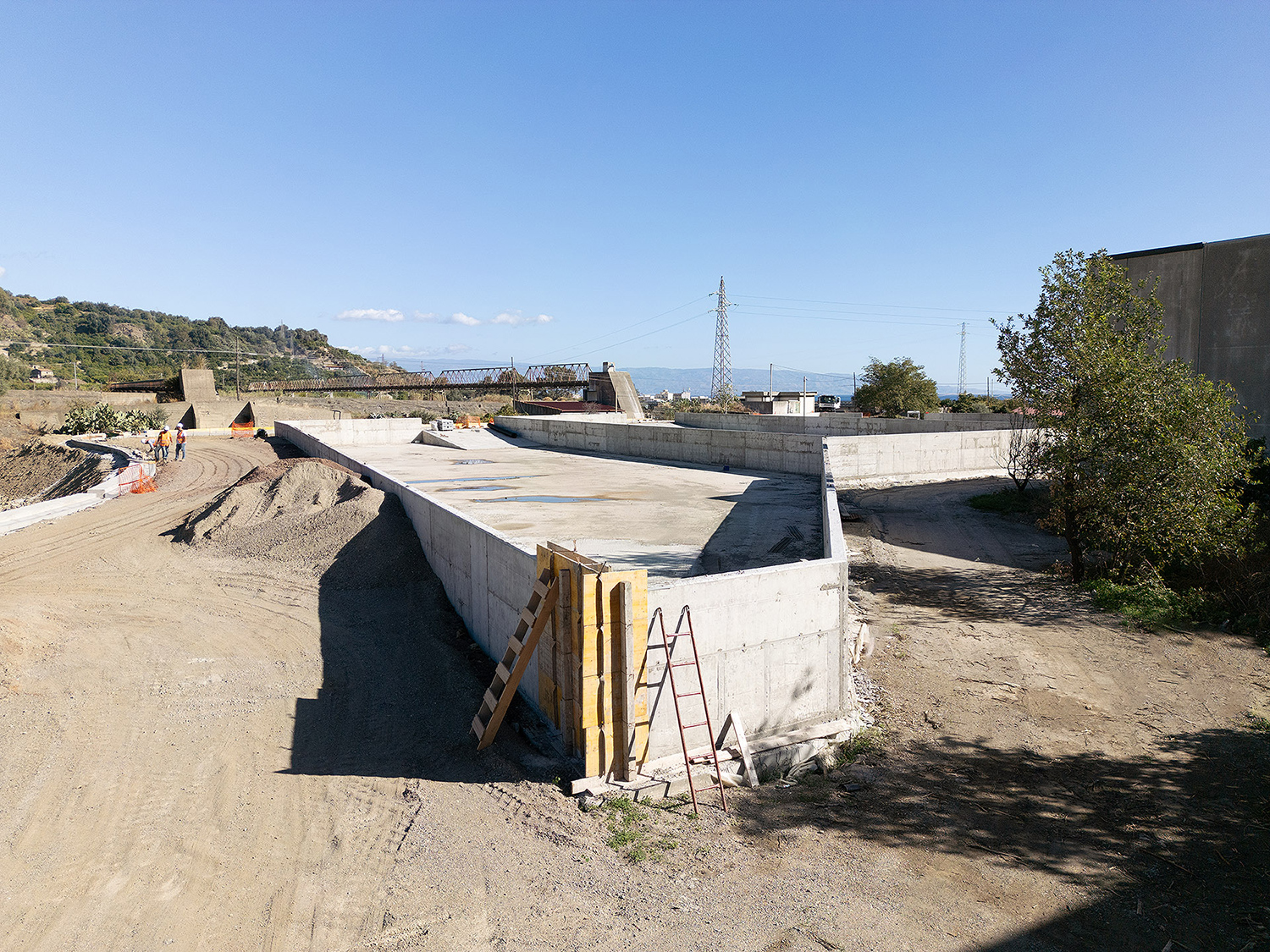 Construction des bassins de décantation, positionnement du tunnelier.