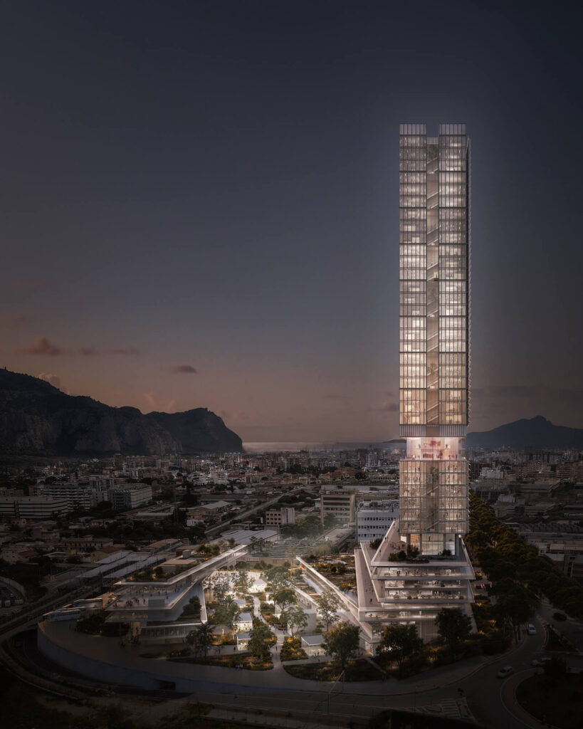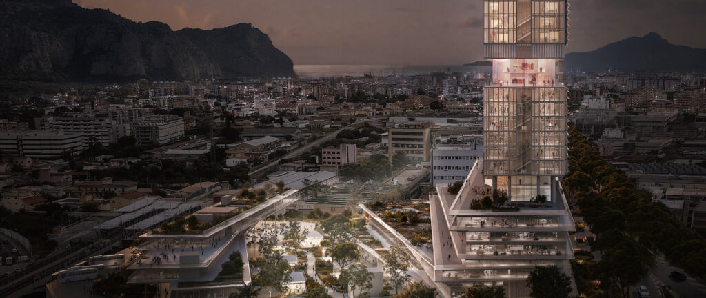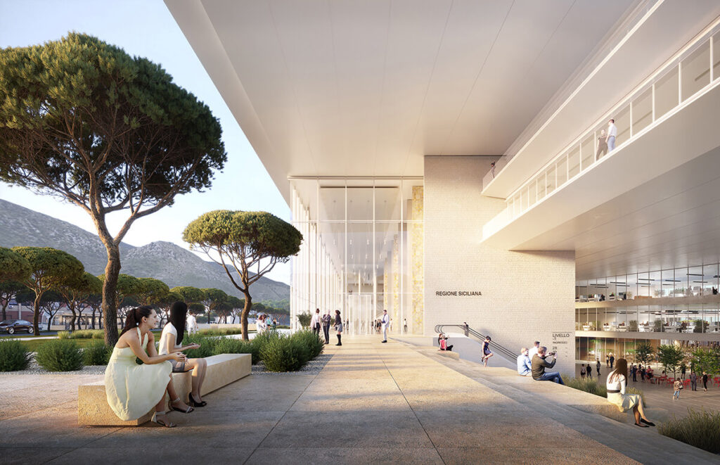 Il progetto del nuovo Centro Direzionale della Regione Siciliana propone un sistema integrato tra urbanità e natura, pensato dunque per funzionare tutto il giorno e tutti i giorni dell’anno, composto da una torre, un podio e un hub.